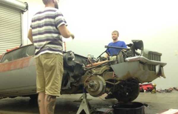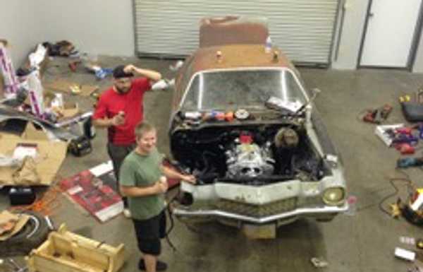 I’m blessed to have a great friend named Noah. My fellow United States Marine decided to fly out to my home in NorCal and help me resurrect my mother in laws 1971 Camaro with the 307 and a power glide. The car was left for dead under an apple tree. A local black bear would use the Camaro like a step stool to get at the apples and caved in the roof. Not a problem with Noah’s patented body work ie a dead blow hammer and 1 precise swing the top was back to normal. We tried to get the 307 to fire but it would only ran badly on the 4 cylinders as the valves were all seized and those cylinders were solid carbon. We then decided to drive my Jeep Srt8 to Summit Racing bought whatever crate engine was cheapest and in stock. Proceeded to the loading docks where several employees aided Noah and I I’m tearing the box off and self clearance the wooden crate so we could shoehorn it into the back of my Jeep SRT8. We drove home as fast as humanly possible, threw on the accessory’s, installed the engine and fired it that evening. Since then I fixed the fuel tank, radiator, subframe, seats, fan, and a plethora of other issues stemming from sitting 6” in the dirt on bald tires since 1992. It comes complete with Fred Flintstone floorboards that expose the beautiful and fireball producing ceramic coated Doug Thorleys and the tires are some Cooper Cobras from the mid 80’s.