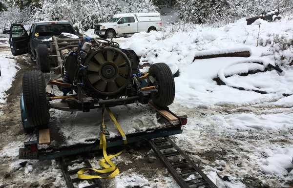 Lengthened the frame 36”, widened the rear axle and leaf spring mounts by 9”, replaced front suspension with Kibbetech long travel kit. Replaced the body with a ’74 Airstream Argosy body.