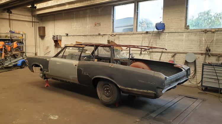 Then one day in 2018, an ad popped up locally with a 1966 GTO, sold new in Belgium too, 389 tri power 4 speed. Oh lord! All the good stuff. The bad, it had been converted to be a hearse in the 70's. It was ROUGH as hell! It had been left outside for more than a decade and you could see through the roof.
