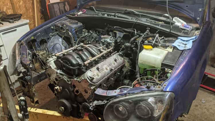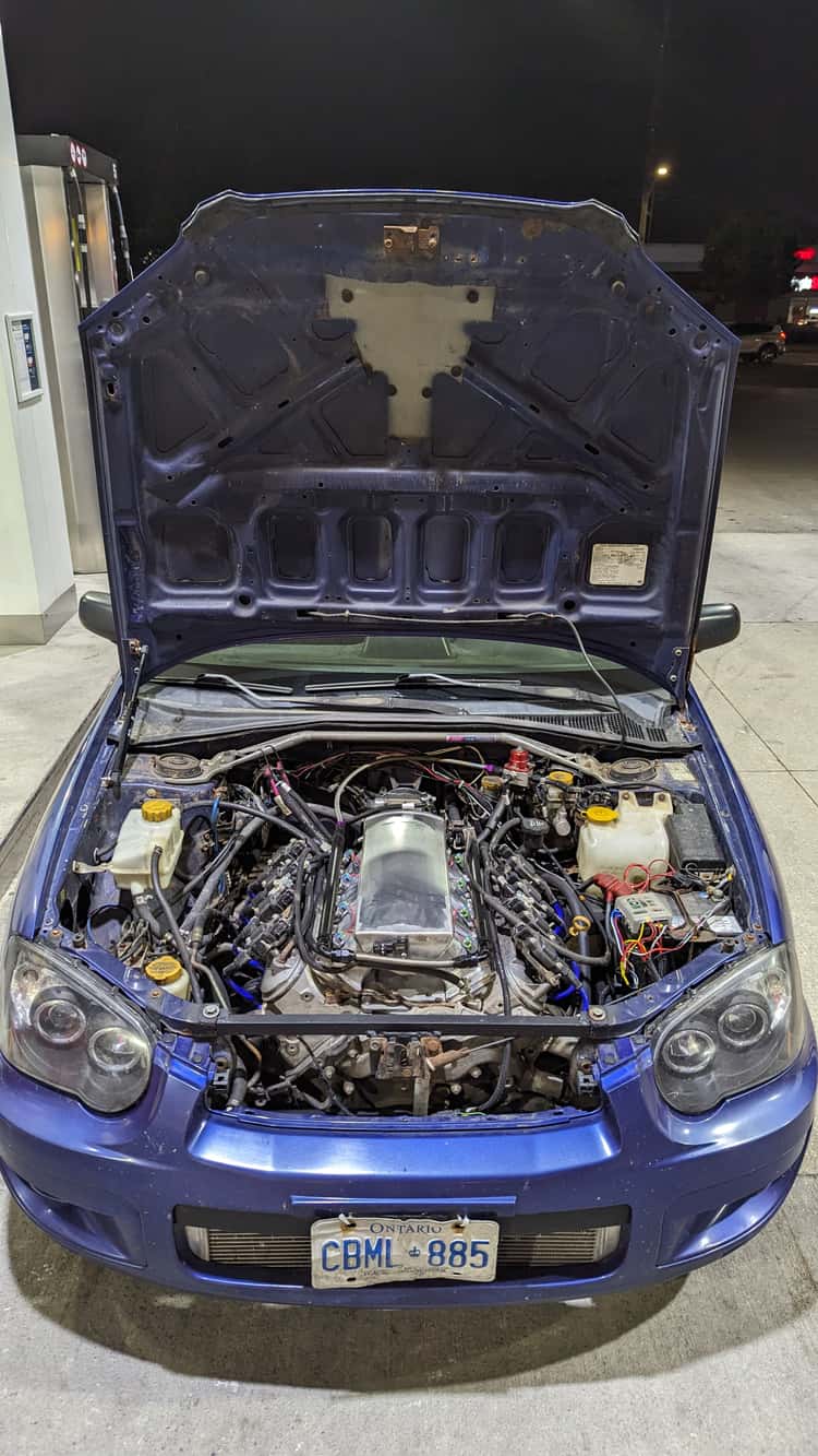 The donor engine would come from a 2008 Chevrolet Impala SS. The 5.3L came stock with a 303hp engine at 5600 rpm. The support for LS swaps is incredible right now. The WRX engine bay wasn't really meant for a V8 though.